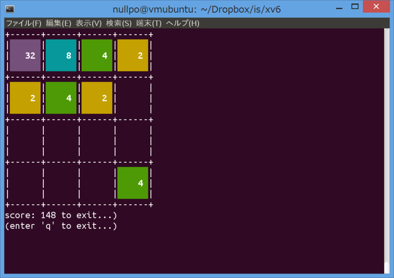 這個(gè) 2048 的質(zhì)量很高。Yuichi 老是在玩。順便提一句,這個(gè) 2048 使用的是 non-line buffering 輸入,這是 Xv6 原本沒有的功能。為了支持這一功能,ioctl 被添加進(jìn)來作為 read 和 write 之外的另一個(gè) devsw 動(dòng)作,另外還添加了用來控制 ICANON 和 echo 的與 termios 相關(guān)的新功能。因此,唯一能以如此高的完成度玩 2048 的 Xv6 就運(yùn)行在 GAIA 上。