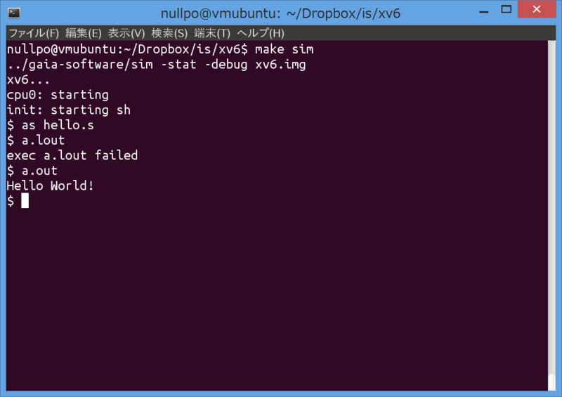 另外,現(xiàn)在也可以在瀏覽器中體驗(yàn)我們的 Xv6:https://nullpo-head.github.io/emcc-gaia-simu/xv6.html