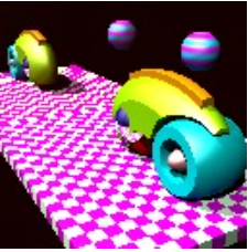 CPU 實(shí)驗(yàn)實(shí)踐課程的原始任務(wù)是「在自制 CPU 上運(yùn)行給定的光線追蹤程序」。現(xiàn)在我們的 CPU 上有操作系統(tǒng)了,你知道該怎么做了嗎?我們決定在我們的 CPU 的 OS 上運(yùn)行這個(gè)光線追蹤程序。我們遇到了一些問題,但我們?cè)谧罱K展示前一個(gè)小時(shí)里成功解決了它們。
